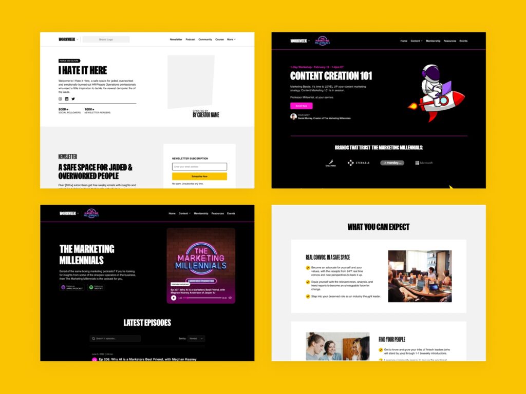With that in mind, we used WordPress-native Gutenberg blocks, to build customizable pages and layouts that accommodate individual branding while still being easy to update and operate. The results are microsites designed to scale and evolve independently, effectively empowering creators to own, personalize, and grow their own digital spaces under Workweek’s banner.