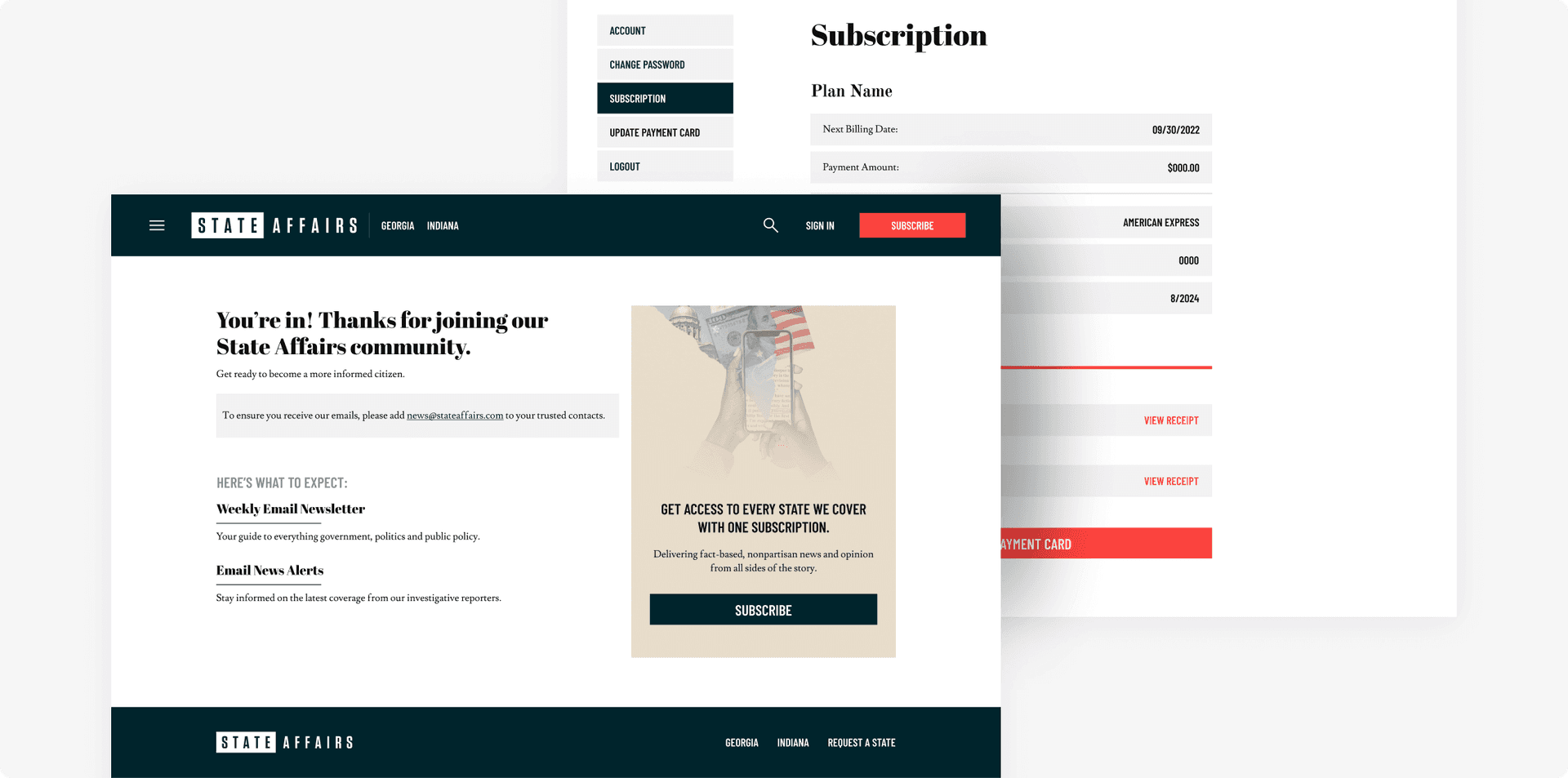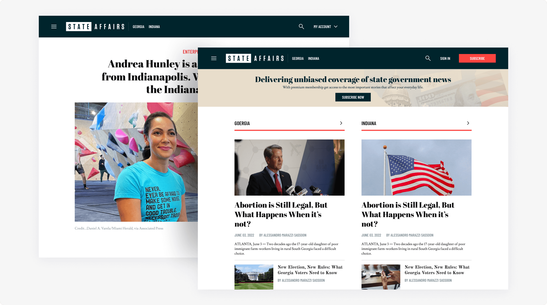 Our developers took a creative approach to creating new site features and the final product. They integrated the State Affairs subscription system with the new platform to reduce costs and improve accessibility. Also, they created a Paywall-enabled CMS powered by WordPress to enhance email capturing.