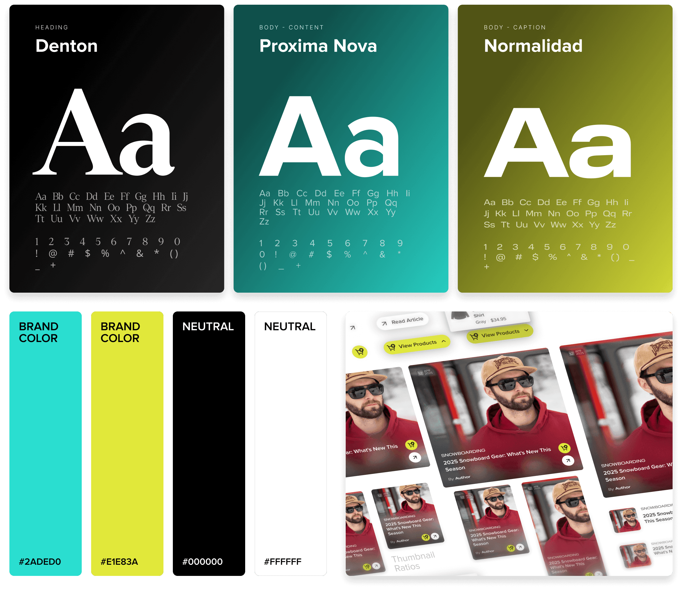 Shopify blocks can be dropped into any page, populated with products or collections, and they update automatically when inventory changes. Video playlists managed in their streaming platform flow directly into embedded players across the site. A unified navigation bar ties together TGR’s website, store, video platform, and forum into a coherent family of properties.